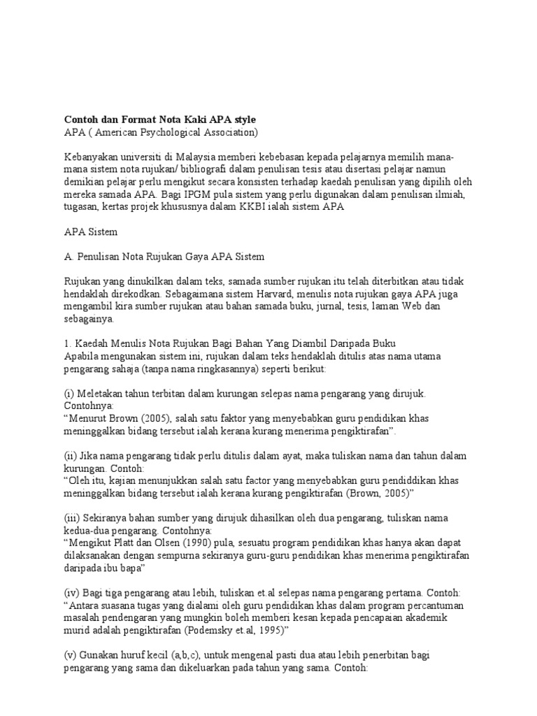 Contoh Dan Format Nota Kaki Apa Style Pdf